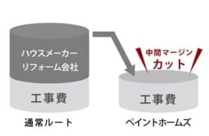 塗装専門店ペイントホームズの直接施工でマージンカット