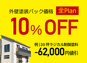 ■外壁塗装+屋根塗装で外壁塗装パック10%Off+屋根塗装10%Off。
