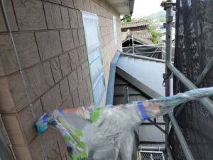 シーリング工事が完了したので本日は高圧洗浄です!合わせて、養生の様子もご紹介します!