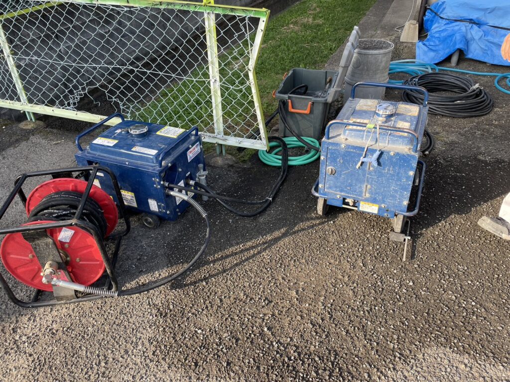 高圧洗浄の機械も2つ用意しました。防音タイプです。タンクもオーバーフローしないように一定の量がたまったら