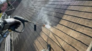 ホーム 〉 ブログ 〉 八女郡広川町アパート外壁屋根塗装中の様子