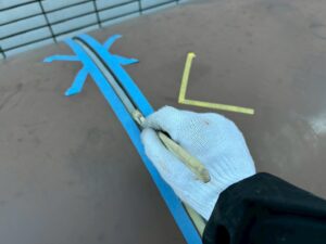 撤去後、屋根材の状態を確認しながら新しいコーキング材を注入。