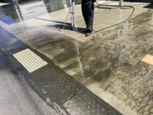 水圧を調整しながら、周囲に飛散しないよう注意して作業を行いました。