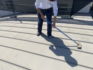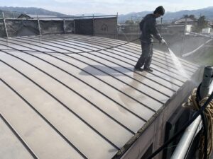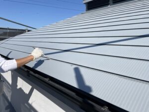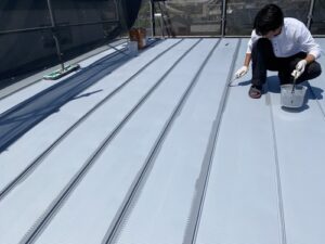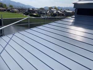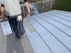 屋根のガルバリウム鋼板のケレン作業です。目荒らしして塗料との密着をよくします((o(^∇^)o))