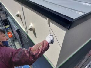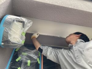 軒天塗装です。刷毛とローラーを使って丁寧に仕上げます♪