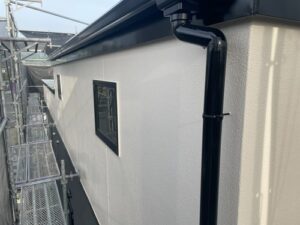 破風、樋もブラックで塗装しました。付帯はファインパーフェクトトップという高耐久性ラジカル制御形ハイブリッド塗料で施工しました^^