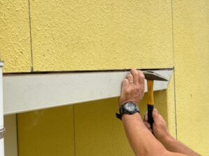 その後、隙間をシーリングして下塗りとアンダーフィラー弾性で少し柄をつけて塗装します(^ω^)