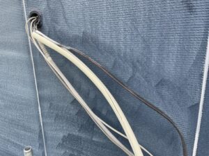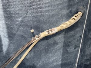 導線もむき出しなので先にクッション材でカバーして非粘着巻テープで巻きました。