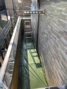 一階部分の外壁塗装の中塗りです!
