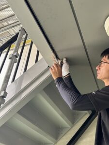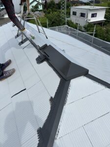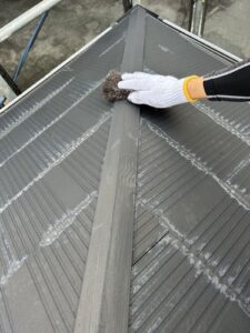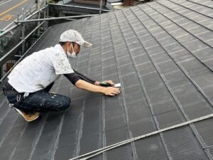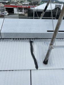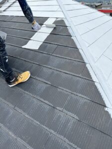 タスペーサーです。屋根、2度目の塗装工事なので屋根材に塗膜がくっついていると水はけが悪くなり毛細管現象で雨水が屋根に逆流したら危険ですのでタスペーサー器具を挿入していきます!^_^