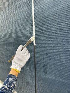 外壁塗装の目地がガスケットというプラスチックみたいな目地なのでそのまま塗ると剥がれるリスクもあるためブリードオフを塗布しました。^^