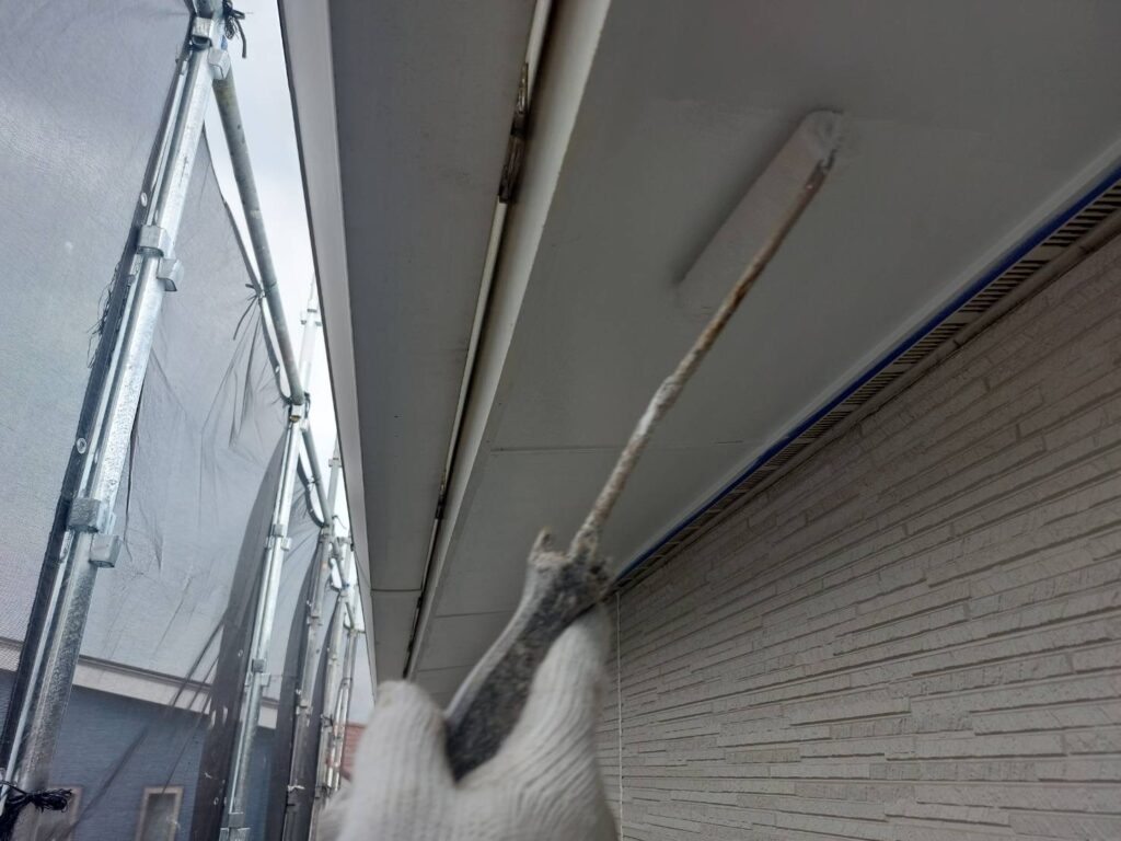 【久留米市 軒天塗装】1回目の塗装途中で見える丁寧な作業✨