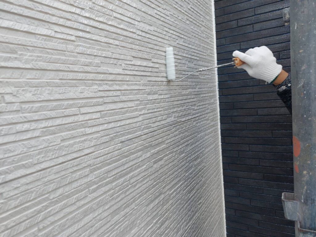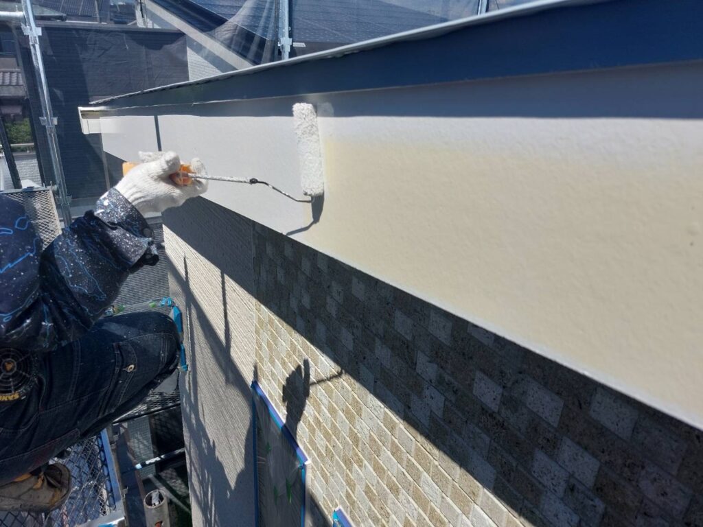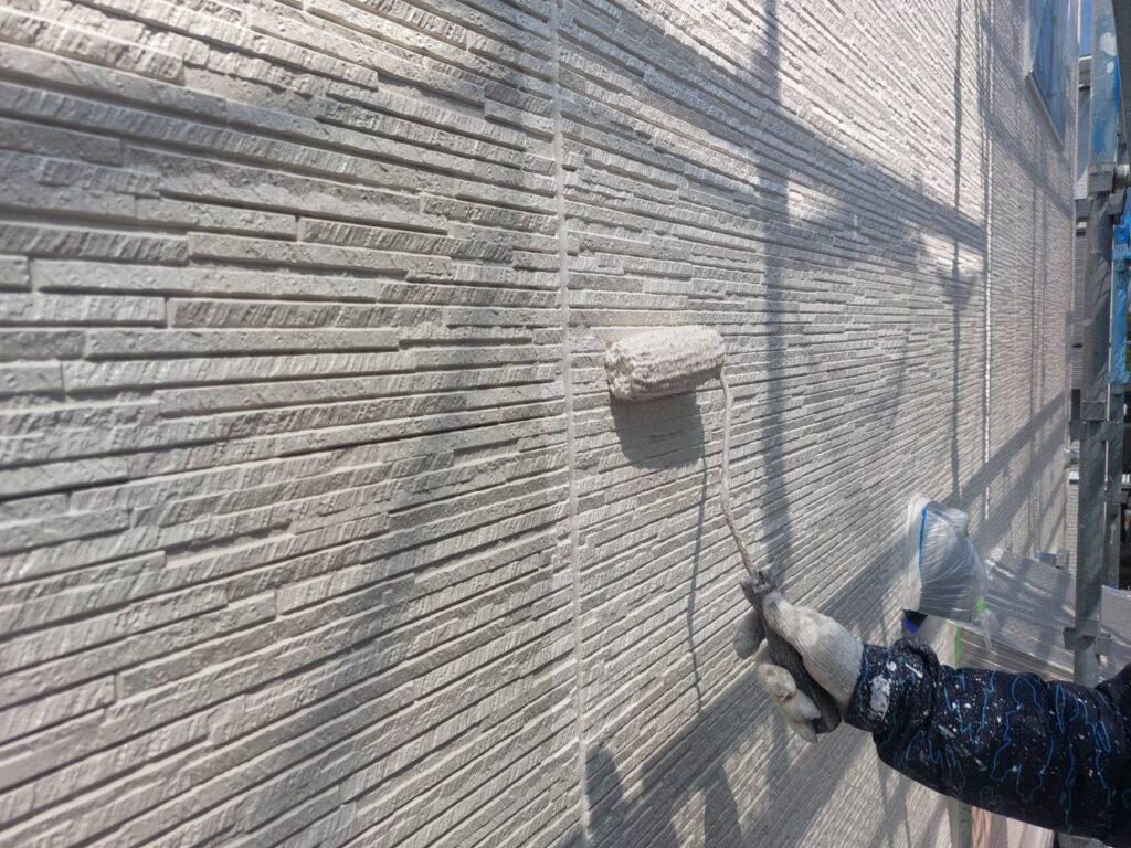 🎨久留米市 外壁中塗り塗装の様子|丁寧な工程で美しい仕上がりへ✨