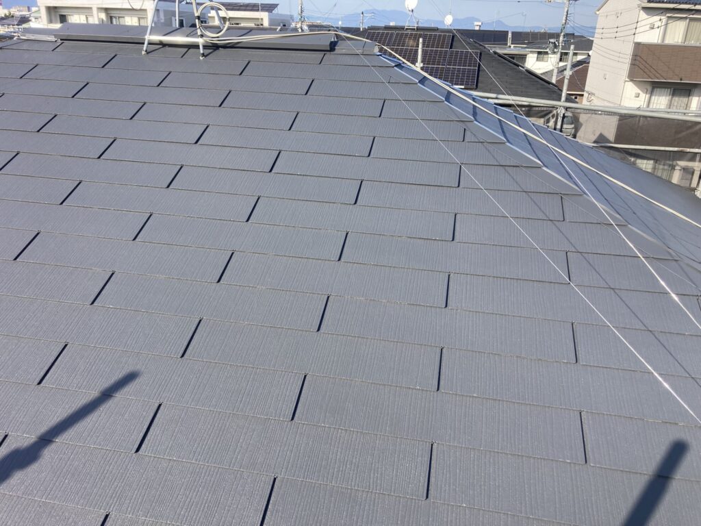 🎨久留米市 屋根中塗り塗装の様子|色がしっかり乗り始め、美しい仕上がりに近づいています✨