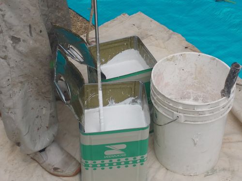 H様邸の塗装工事開始!塗料の希釈中様子