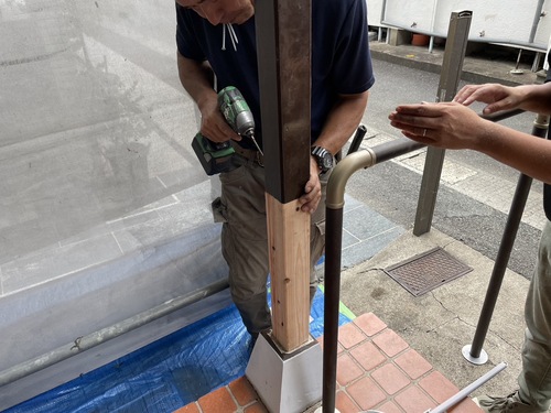 久留米市諏訪野町の塗装工事、柱補強^ ^