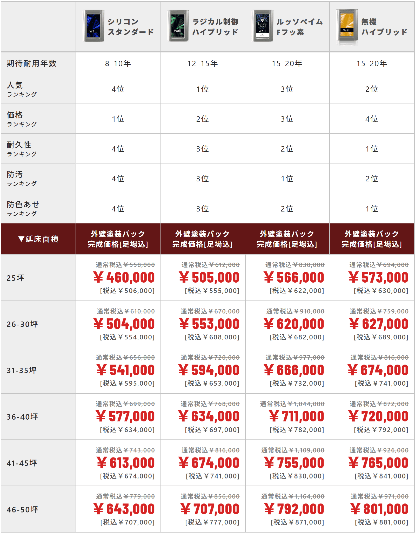 厳選した4つの塗料プラン